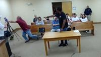 Hickman Fire Chief John Amberg can be seen lunging at Tyler Dunn, who was recording the meeting on April 13.